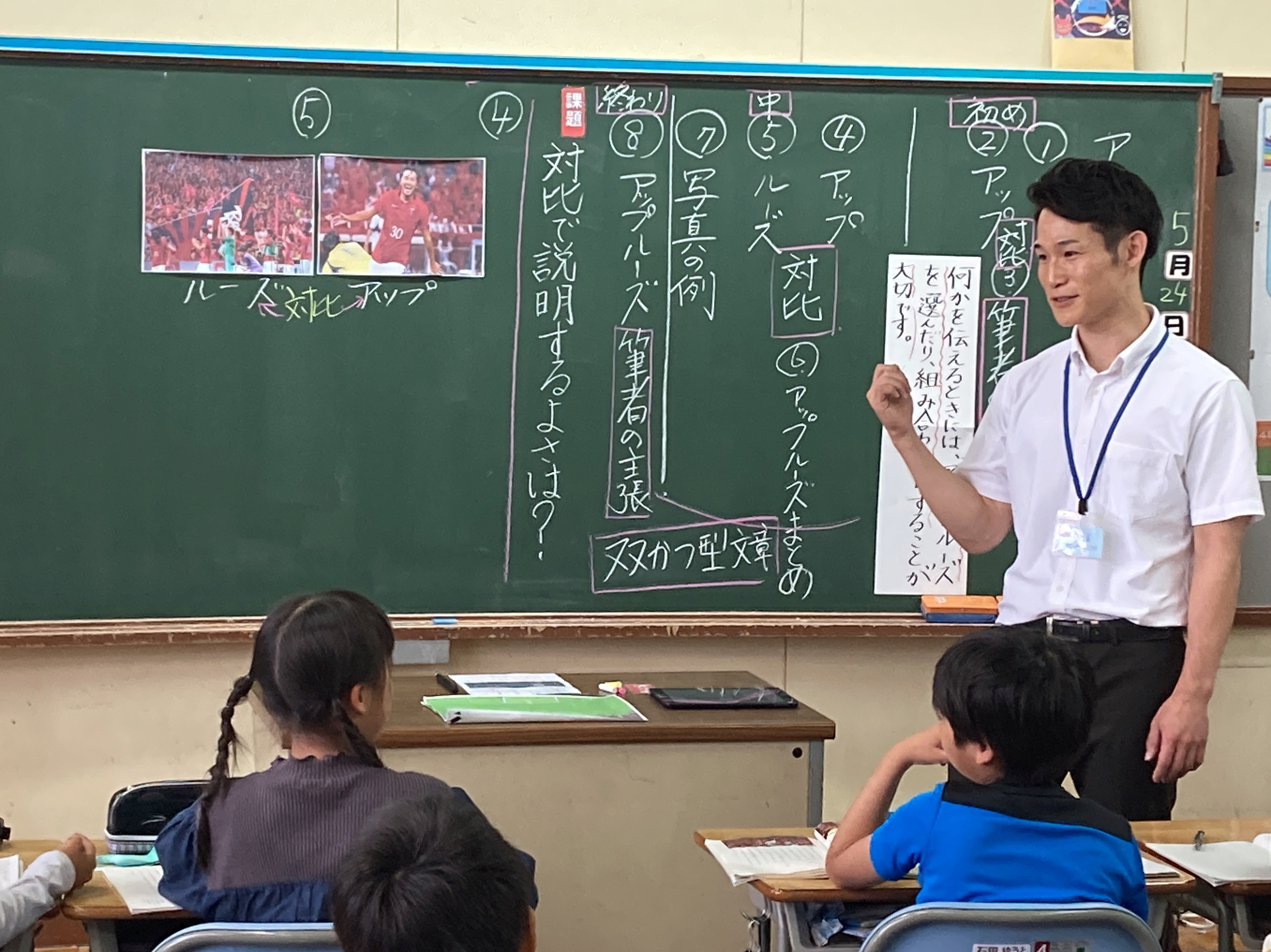 5月24日には、4年生の国語の研究授業を行いました。学校教育指導訪問(一次訪問)を兼ねて行い、全体協議では指導主事の方からの指導助言もいただきました。今年度も樺山教授の提唱するラーニングマウンテンを活用し、子どもたちが単元のゴールを意識し、課題意識をもって取り組めるような授業づくりを目指しています。また、記述力が高まるような日常の指導にも力を入れて取り組んでいます。