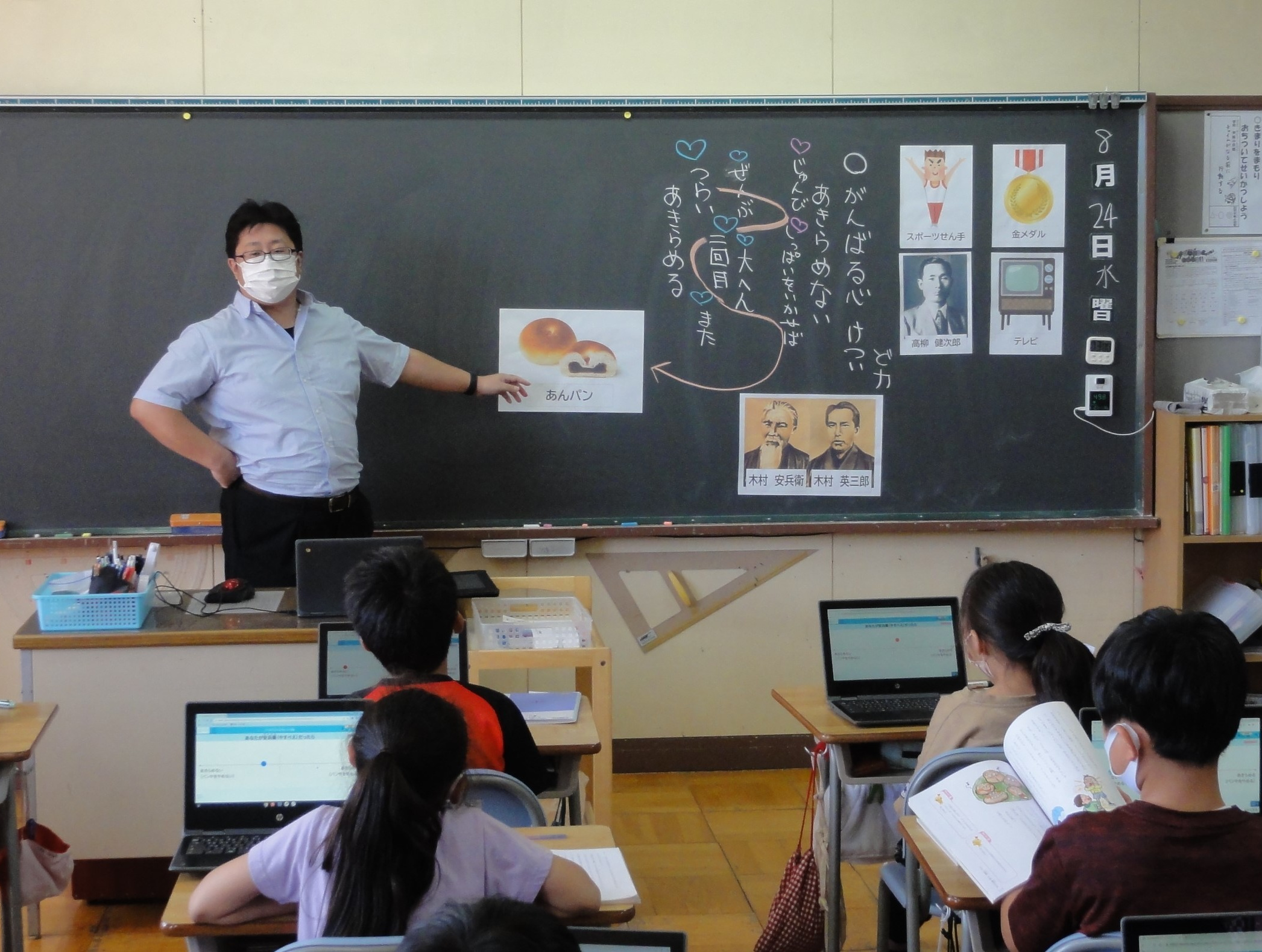 8月24日 3年生 道徳「目標に向かって 資料 『あんぱんの日』」