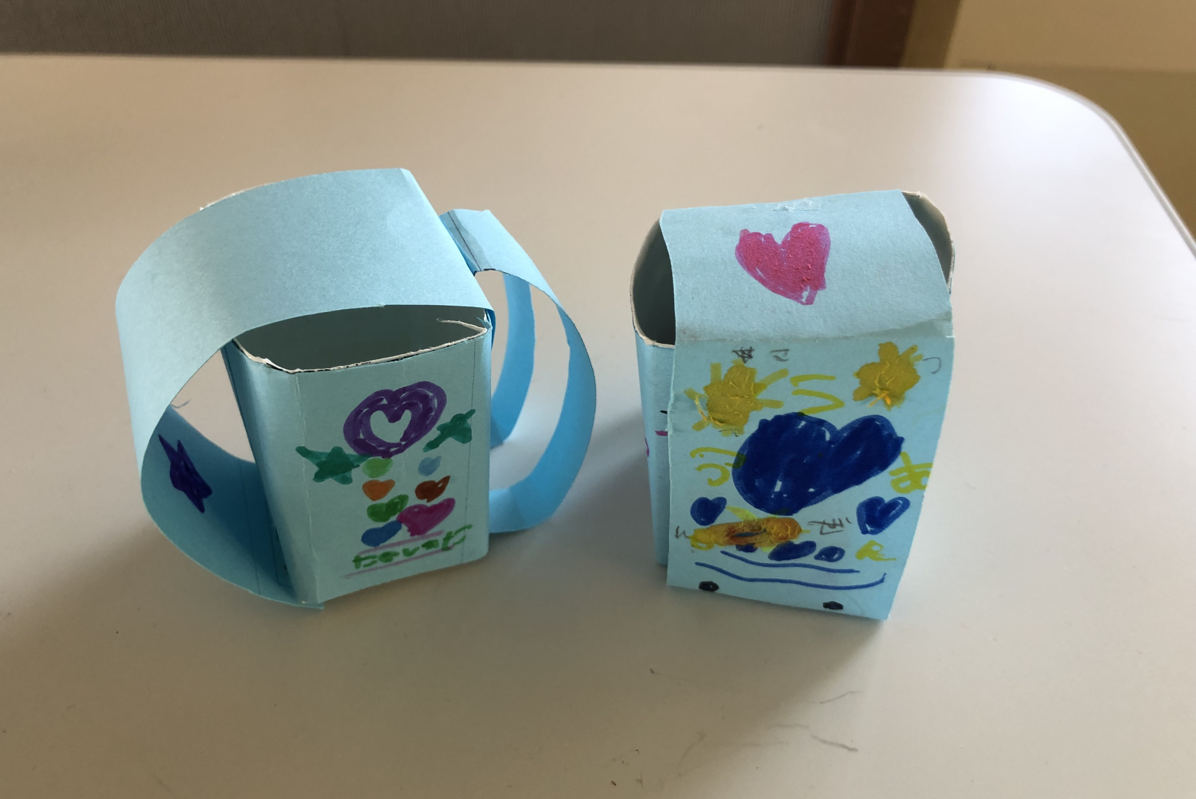 紙で作った手作りランドセルです。自分で絵を描いて完成!