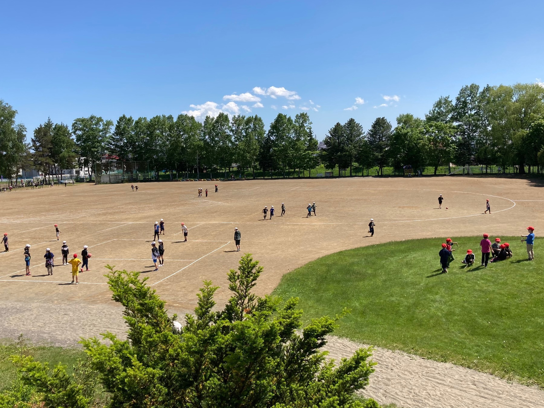 グラウンドで元気に遊ぶ子ども達