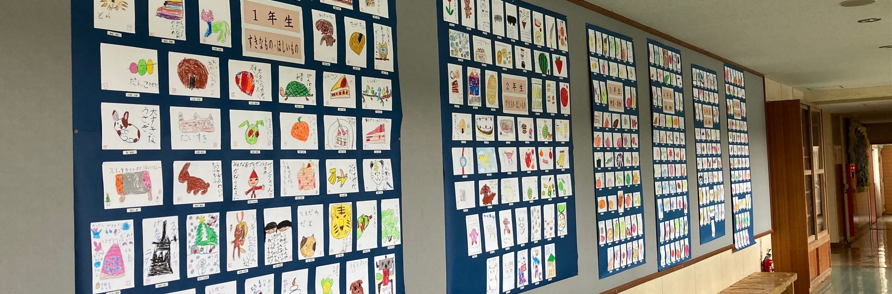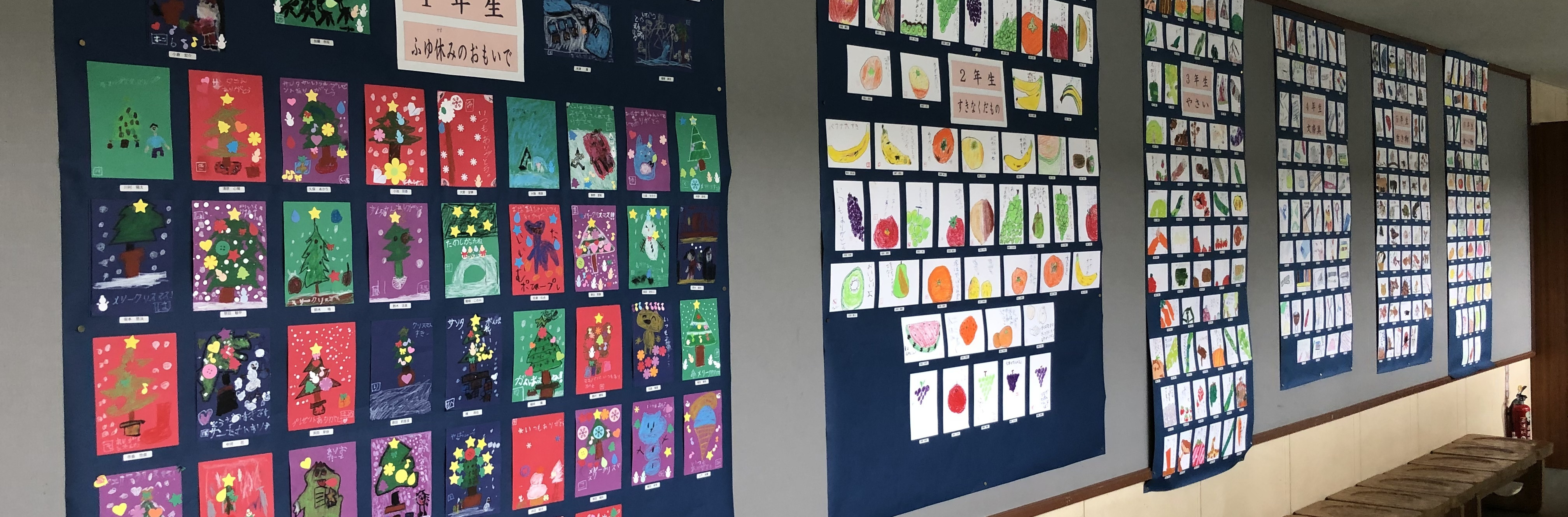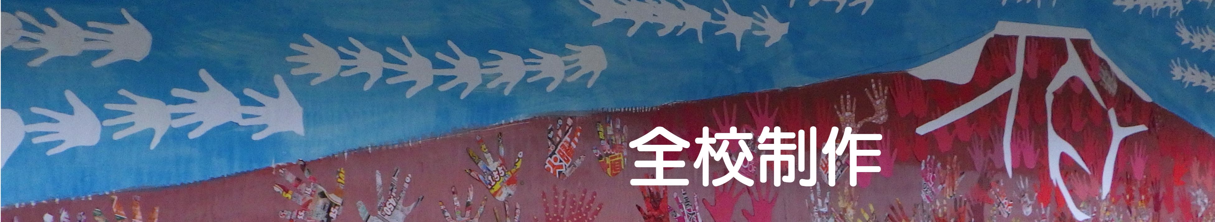 本校では特色ある教育活動の一環として「全校制作」に取り組んでいます。1年生から6年生まで全員の力を合わせてダイナミックな作品を完成させています。