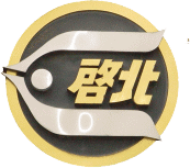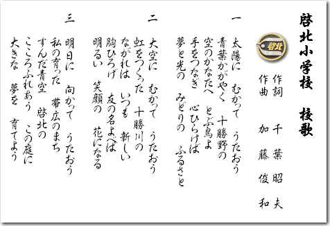 太陽に向かって飛翔する鳥達の姿を抽象化し,中央に「啓北」の2